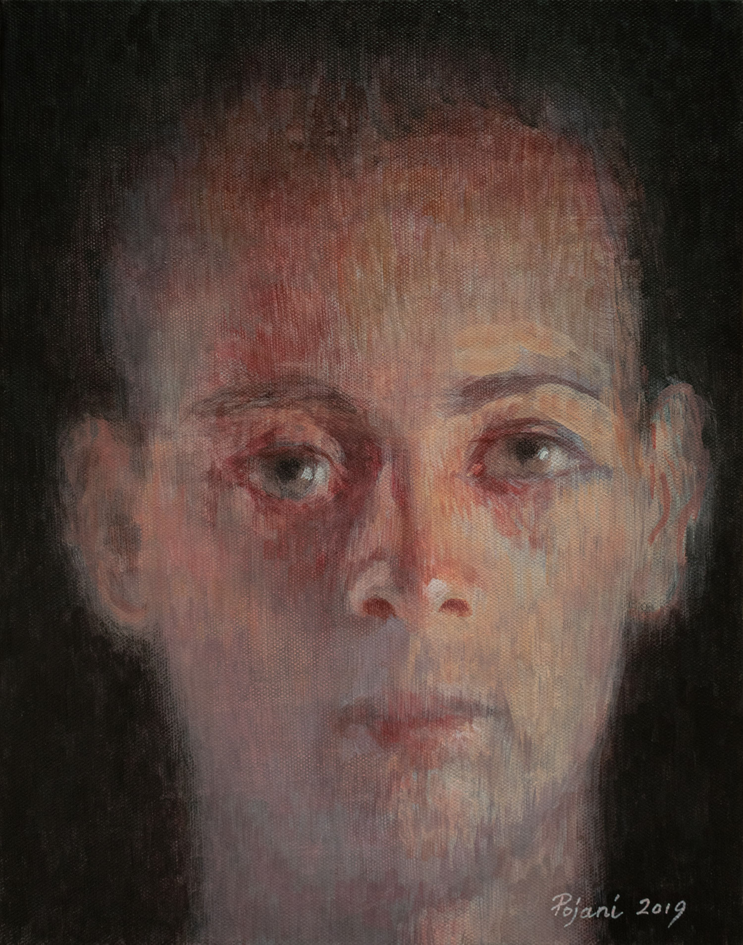 Portrait of a young man in a May Night. 2019, Acrylic on canvas, 14 H x 11 W x 1.4 inches, (30.5 x 28 x 3.5 cm)